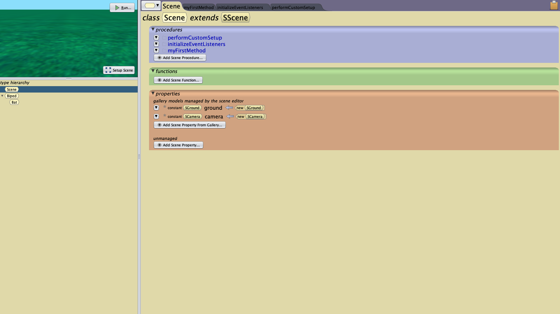 In the diagram, yellow = nouns, green = functions, purple = procedures. The software’s colors follow this mapping.
